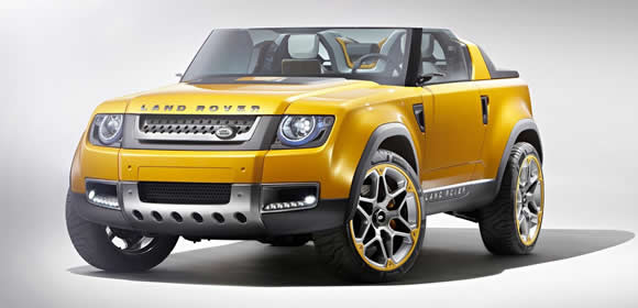 The first idea off the drawing board for public approval is the DC100 and convertible version the DC100 Sport. Both made their debut today at the Frankfurt Motor Show and so far seem equally loved and hated. The Land Rover DC100 Sport Concept is hard to imagine anywhere but a California beach with its bright metallic yellow paint and huge alloy wheels. The wheels in fact look strikingly impractical for a Defender with a tiny profile which would be very unforgiving on rough ground.